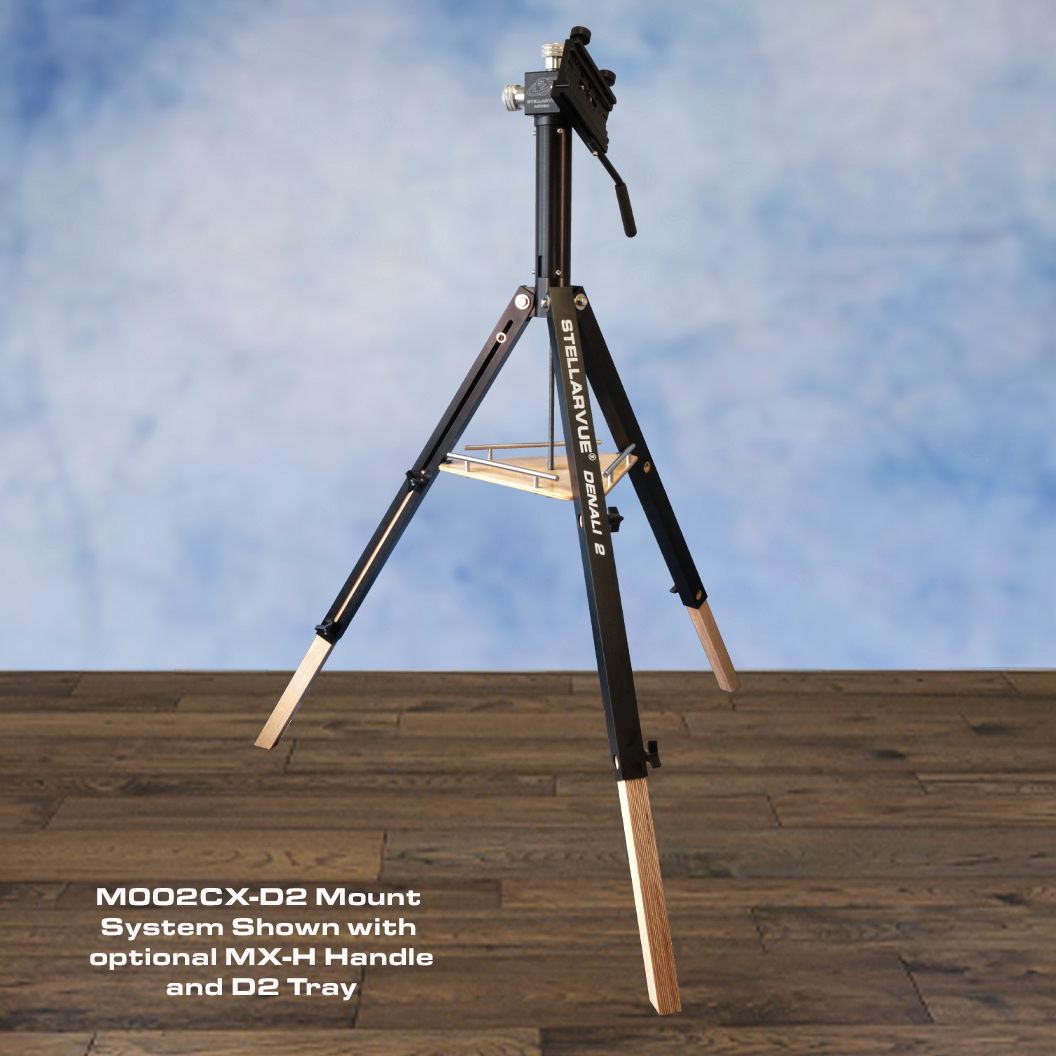 New Optional Tray: An Appleply wooden accessory tray may be added optionally to hold your eyepieces, star diagonal, filters and other accessories. This tripod is designed to hold hold Stellarvue telescopes up to the SVX127D using the Stellarvue M002C mount and column. We do not recommend this setup for our larger telescopes.